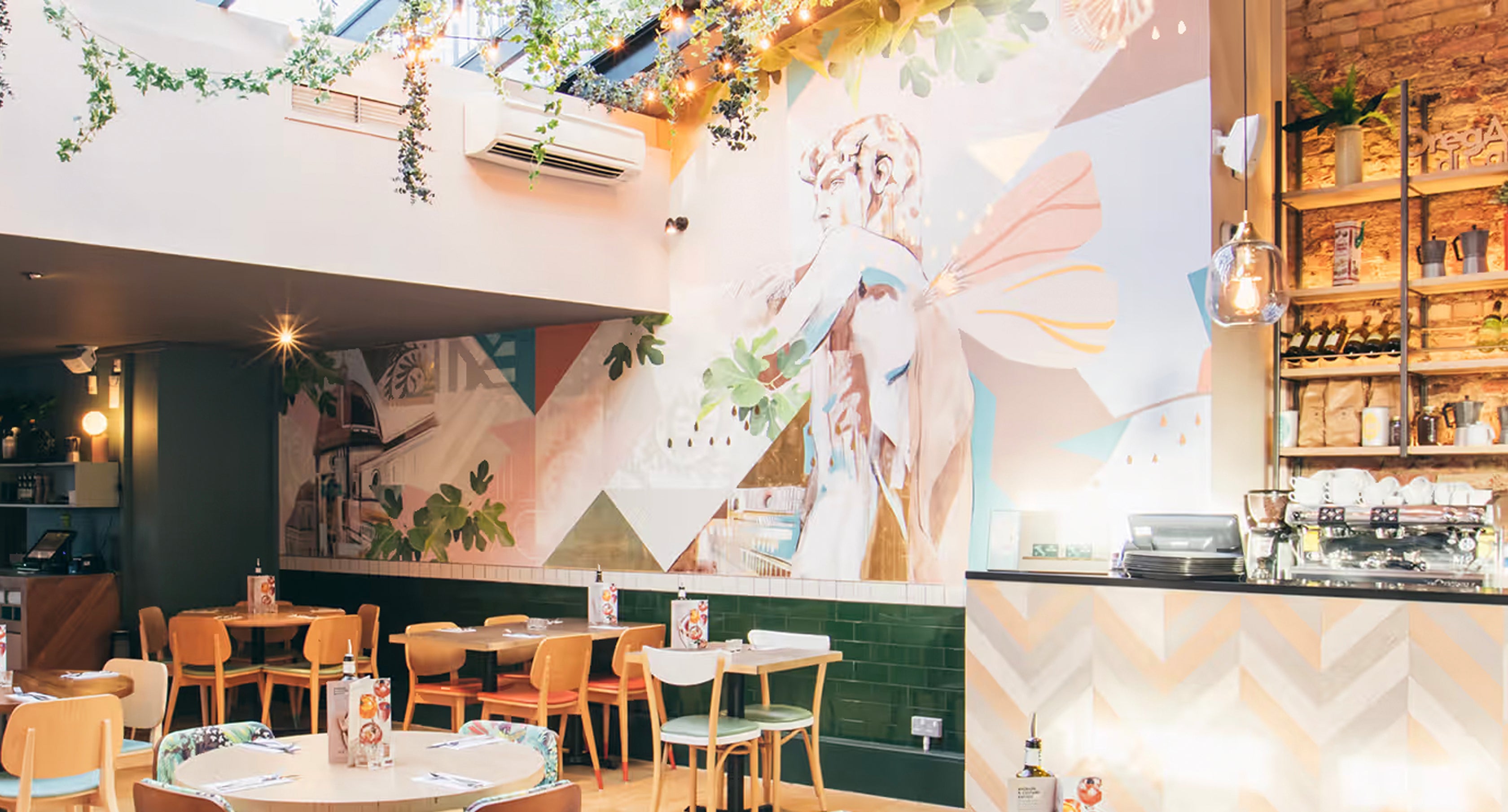 Working on murals for brands such as ASK Italian, Fringe Yoga, Zizzi, Bare Wholefoods and Wildleaf to name a few.