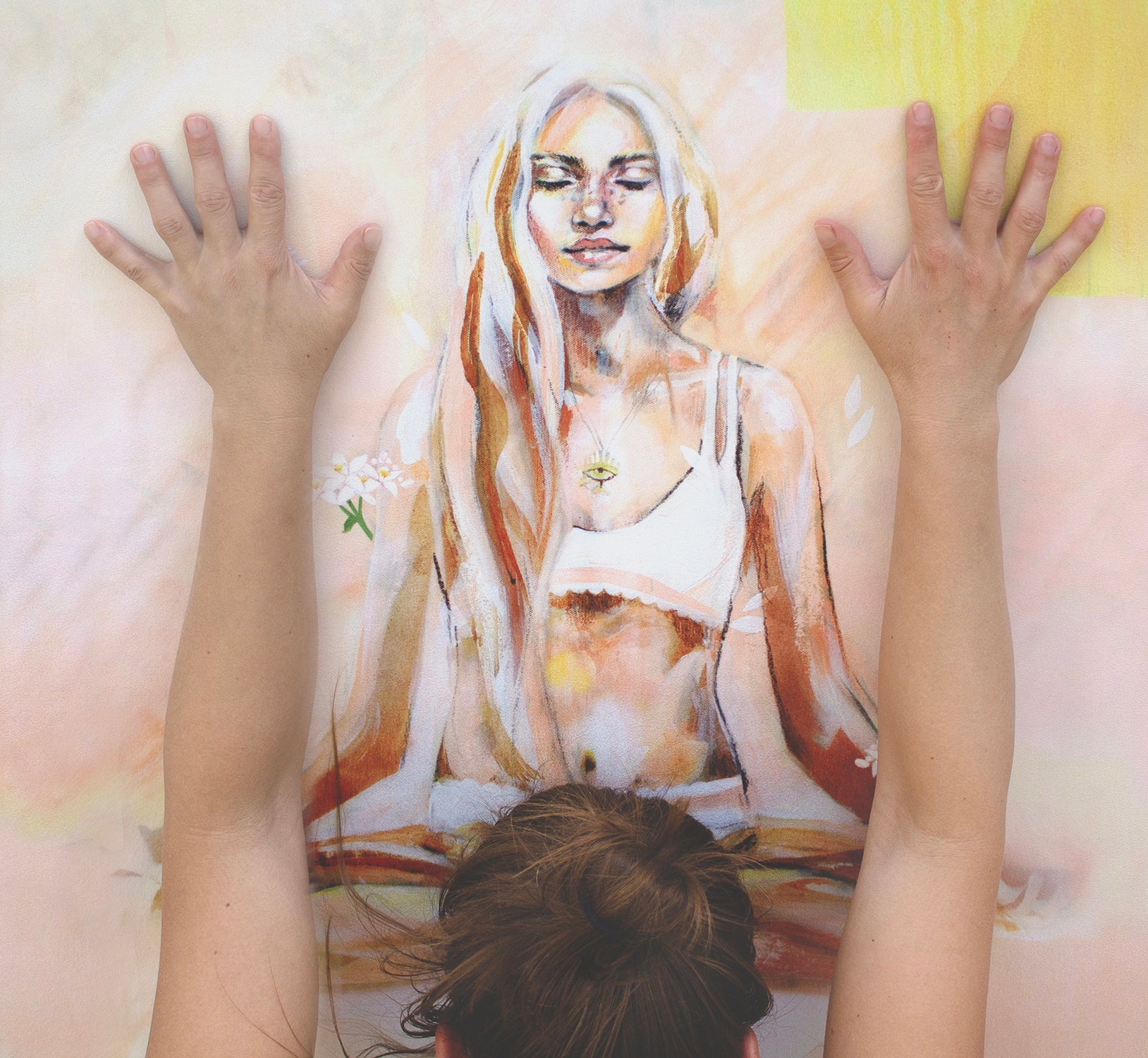 It’s amazing quality and a beautiful painting of a lady practicing meditation.