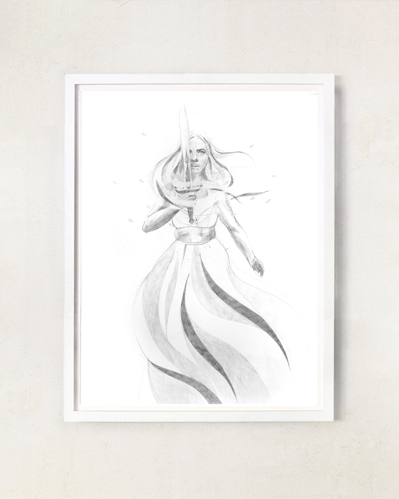 Drawn in graphite on fine art paper, Inner Fire blends softness and strength — a piece about trust, presence, and staying true to your path, even when the world moves around you.